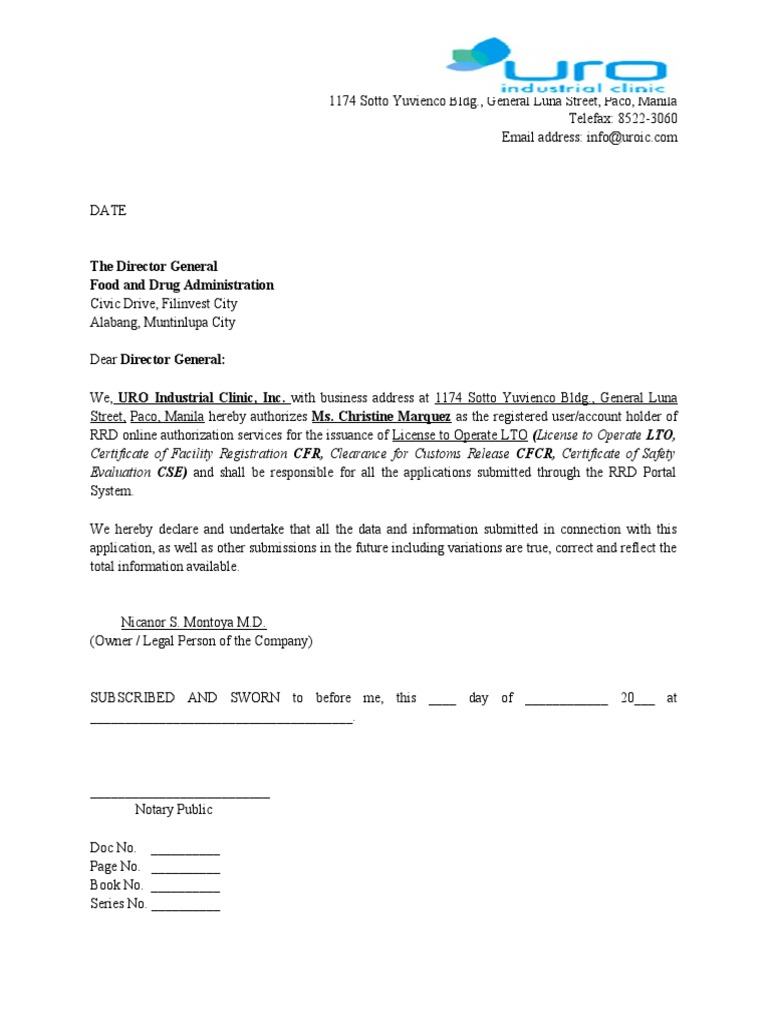 We, URO Industrial Clinic, Inc. with business address at 1174 Sotto Yuvienco Bldg., General Luna