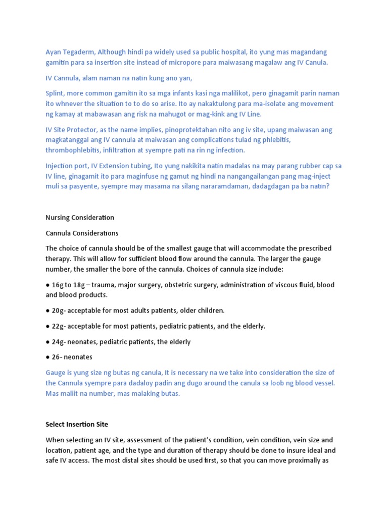 Syempre kung mamimili tayo ng vein na iinsertan ng IV Cannula, kailangan yung healthy na vein. Jan