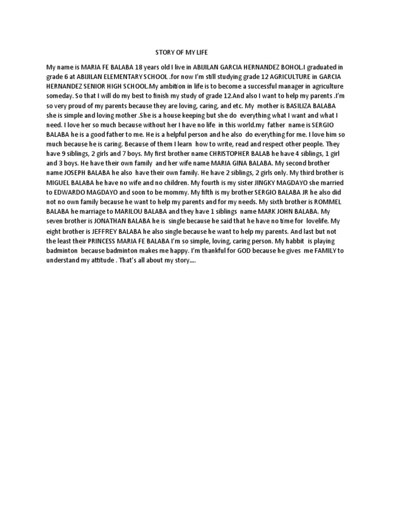 the least their PRINCESS MARIA FE BALABA I’m so simple, loving, caring person. My habbit is playing