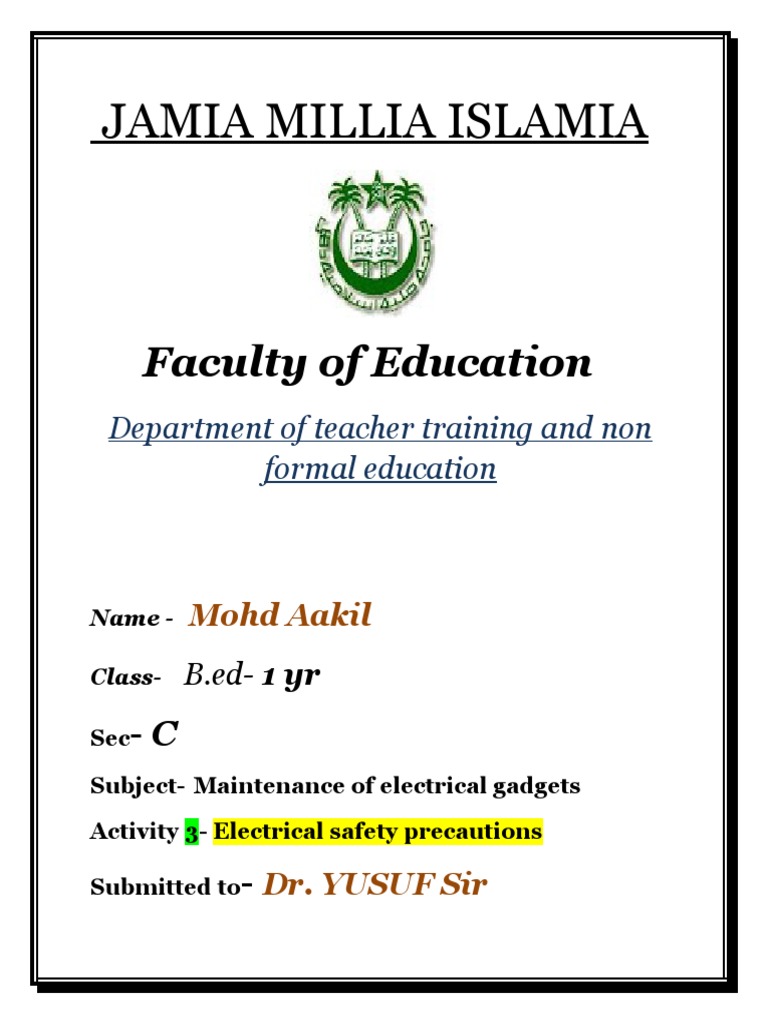 Activity 3- Electrical safety precautions
