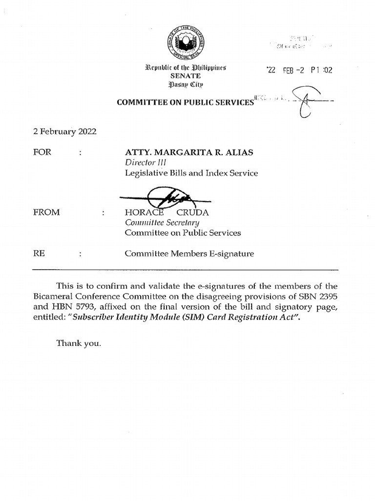 PH: "Subscriber Identity Module (SIM) Card Registration Act" - Final