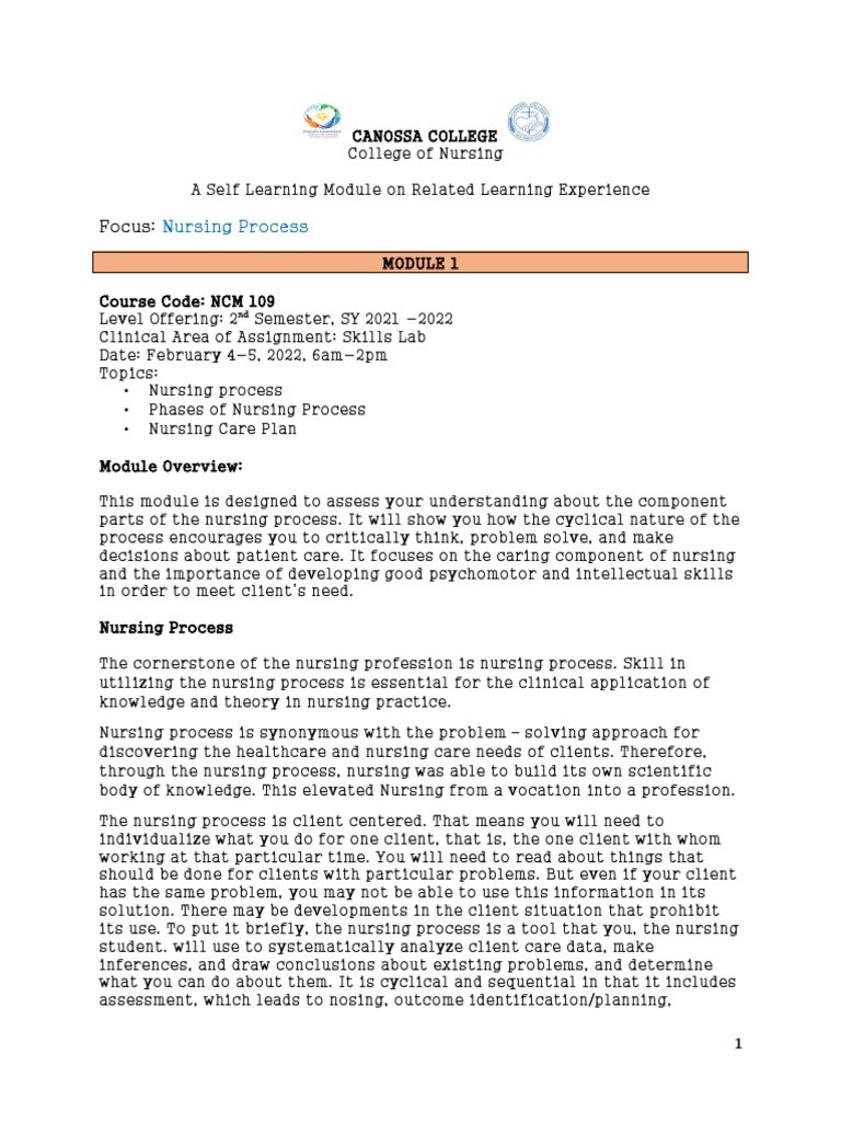 The nursing process is client centered. That means you will need to