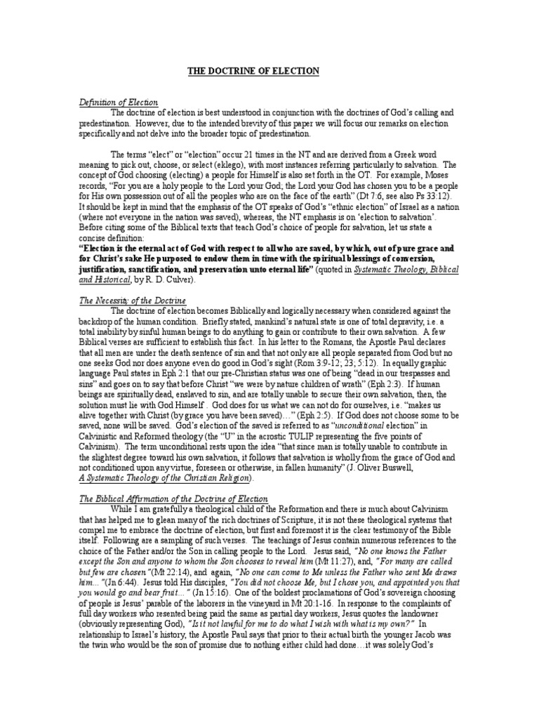 predestination. However, due to the intended brevity of this paper we will focus our remarks on election