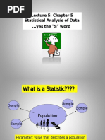 A parameter is a number that describes some aspect of a Our interest is in the variablility of the statistics from the