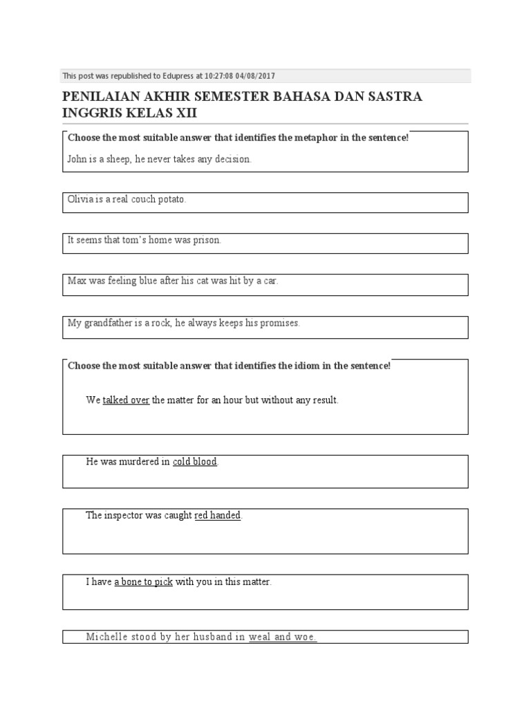PENILAIAN AKHIR SEMESTER BAHASA DAN SASTRA