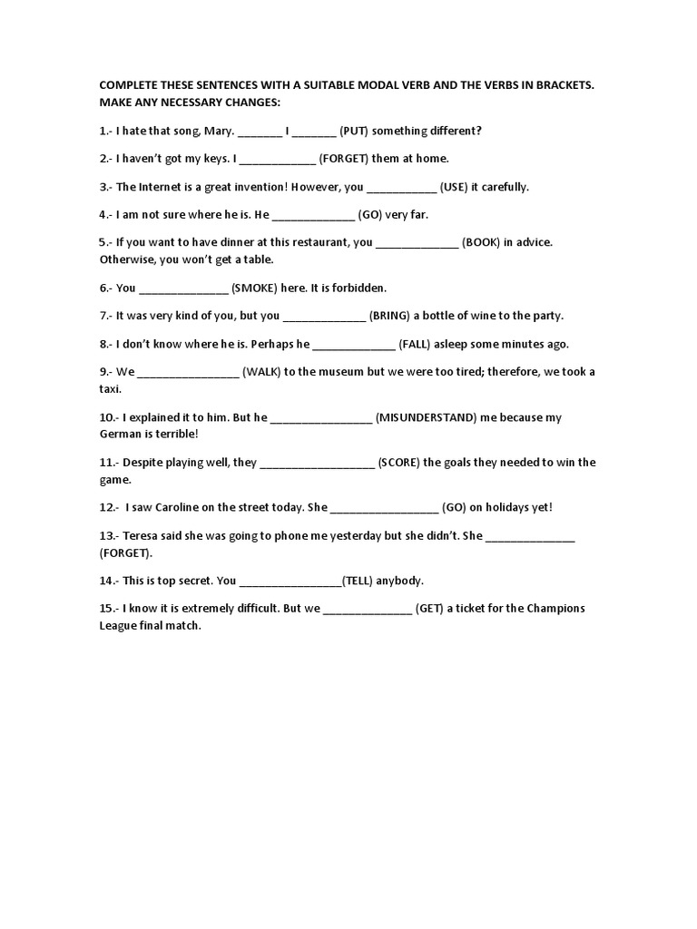 COMPLETE THESE SENTENCES WITH A SUITABLE MODAL VERB AND THE VERBS IN BRACKETS.