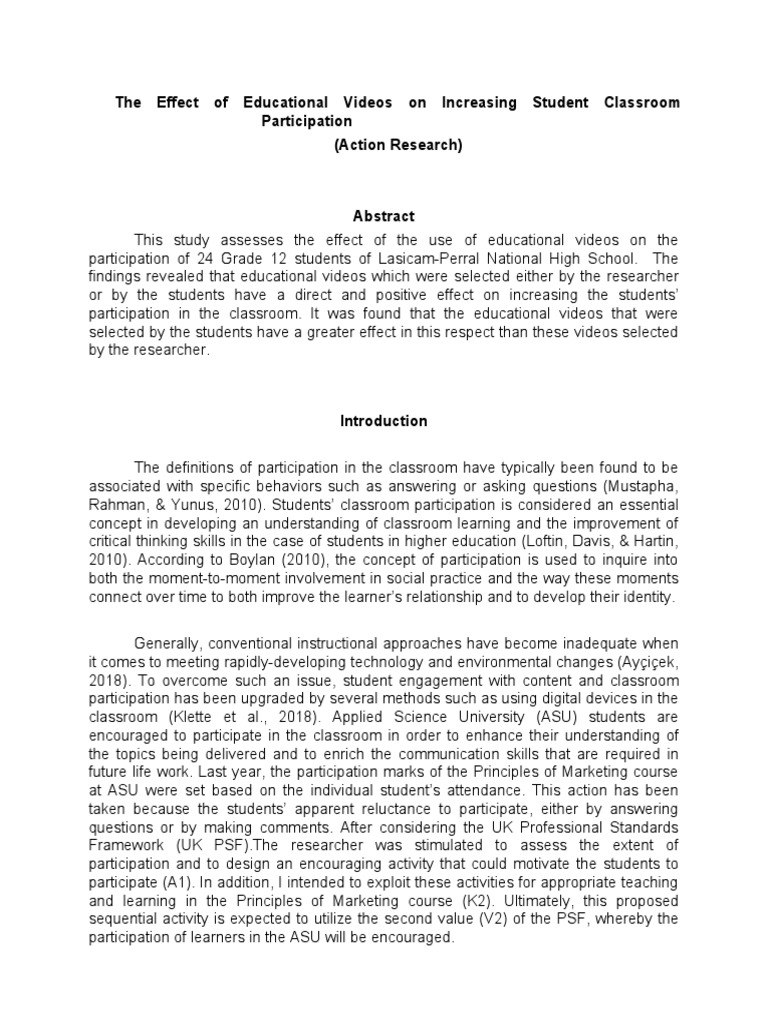 videos on the students’ classroom participation. Additionally, this action research aims to