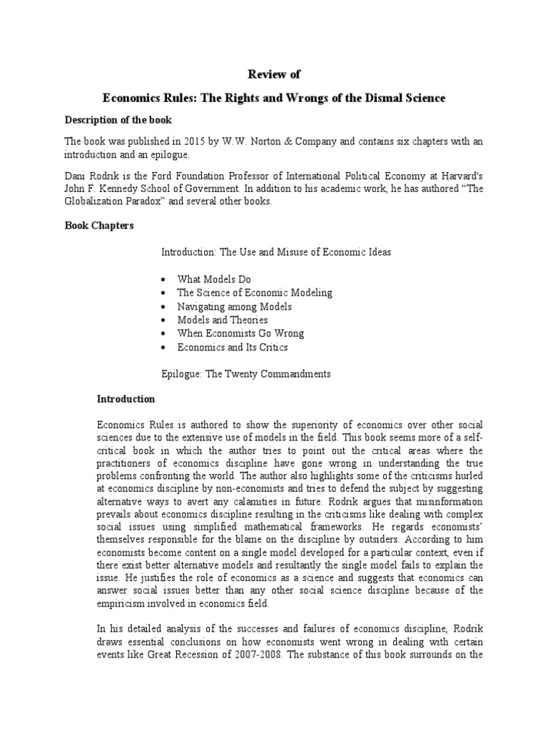 sciences, as its name suggests “Economics Rules” despite involving a critical analysis on