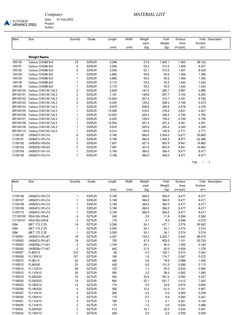C100106 UKB457x191x74 1 S355JR 5,169 384.0 384.0 8.477 8.477
