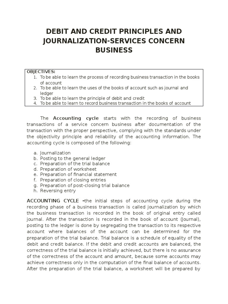 3. To be able to learn the principle of debit and credit