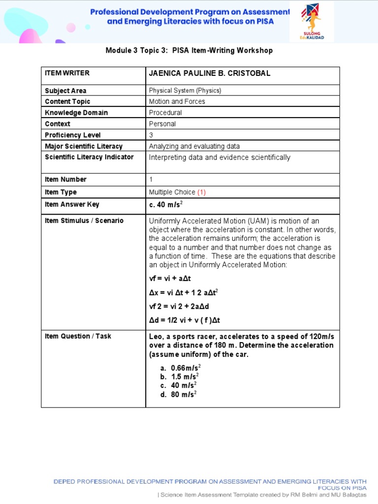 Module 3 Topic 3: PISA Item-Writing Workshop