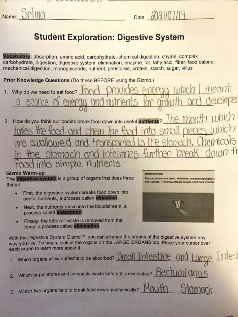 Student Exploration: Digestive System