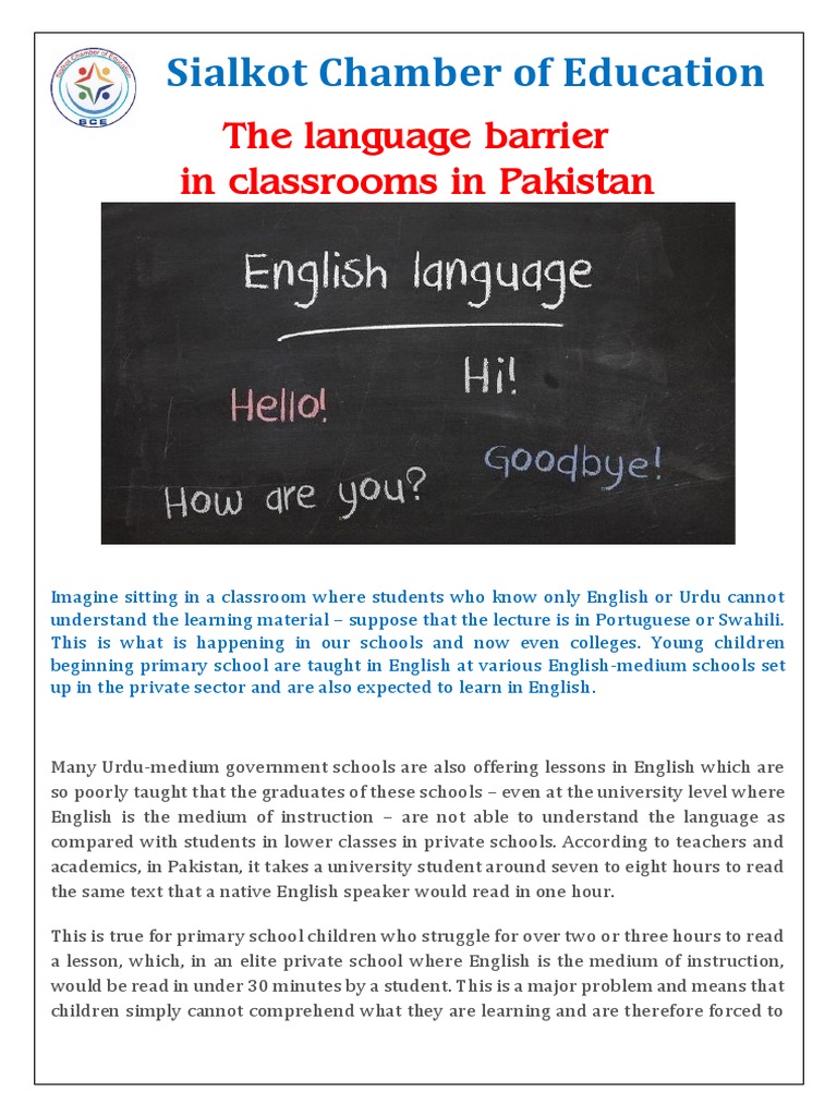 Imagine sitting in a classroom where students who know only English or Urdu cannot