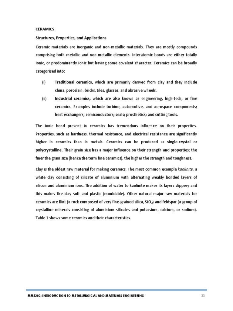 ionic, or predominantly ionic but having some covalent character. Ceramics can be broadly