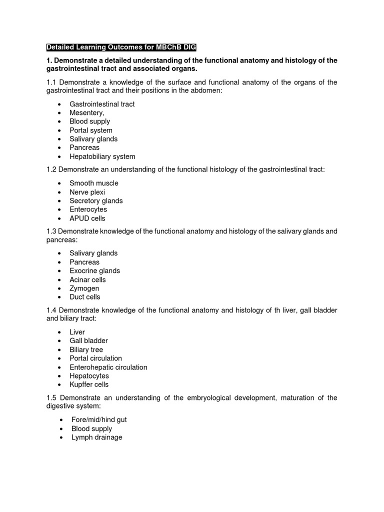 1. Demonstrate a detailed understanding of the functional anatomy and histology of the