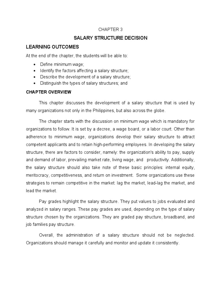 policies and salary structures. The main objective of a salary structure is to provide fair