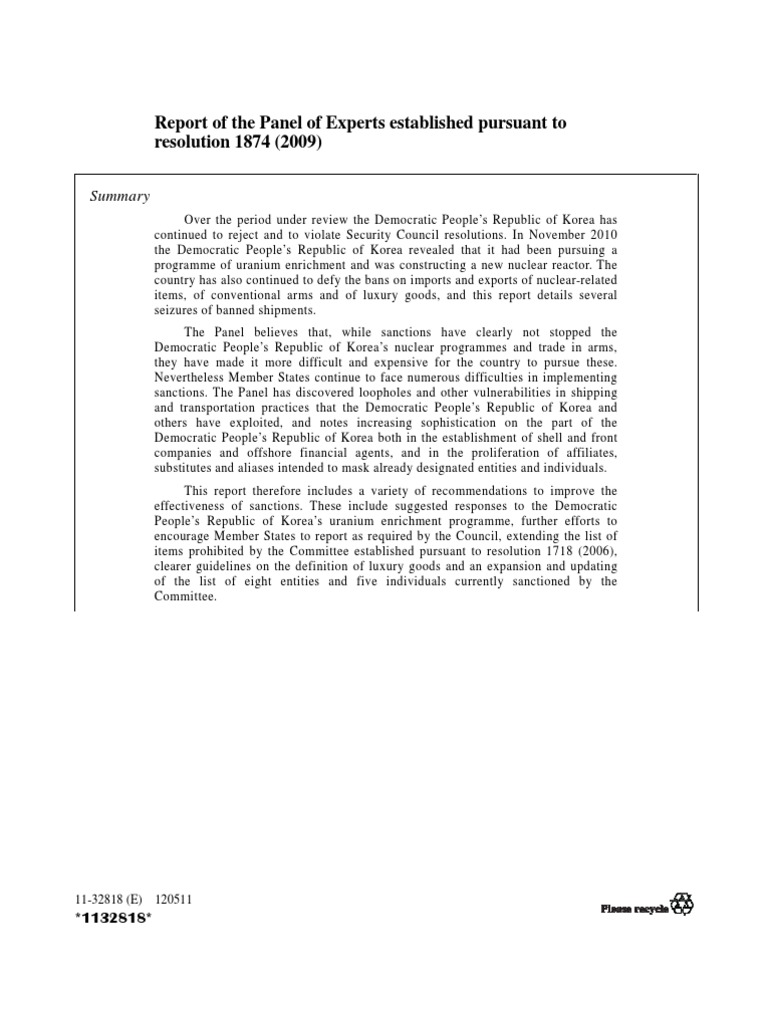 Report of the Panel of Experts established pursuant toresolution 1874 (2009)