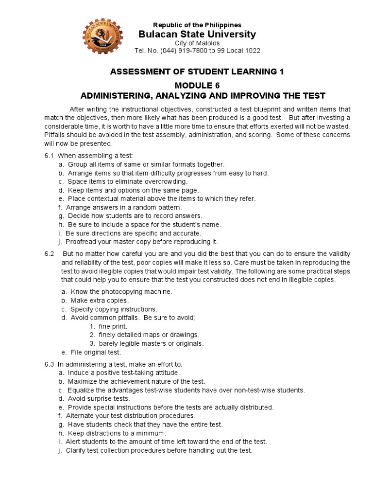 Pitfalls should be avoided in the test assembly, administration, and scoring. Some of these concerns
