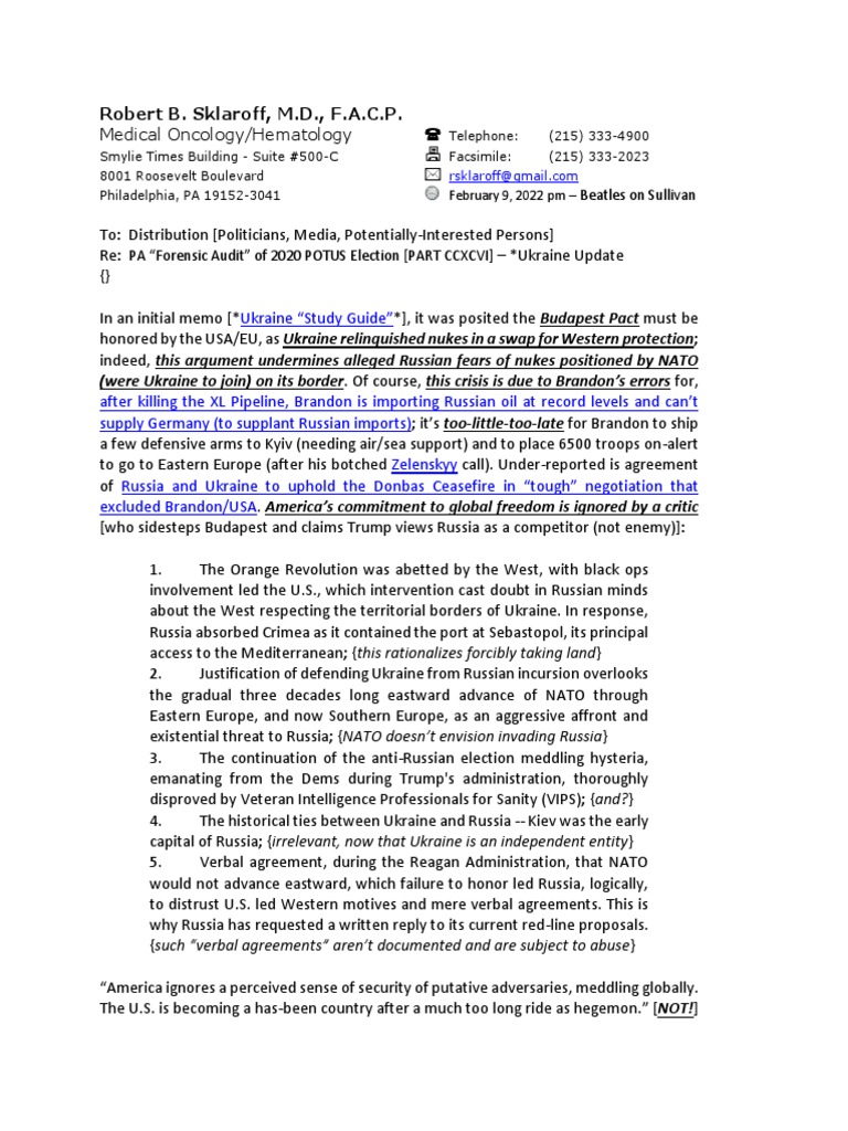 Re: PA “Forensic Audit” of 2020 POTUS Election [PART CCXCVI] – *Ukraine Update