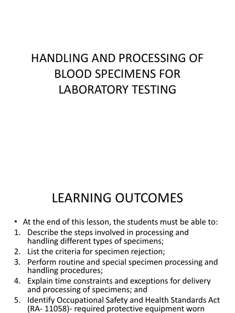 ✓ For specimen that needs centrifugation, it should be done in 1 hour.