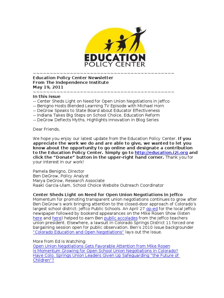 We hope you enjoy our latest update from the Education Policy Center. If you