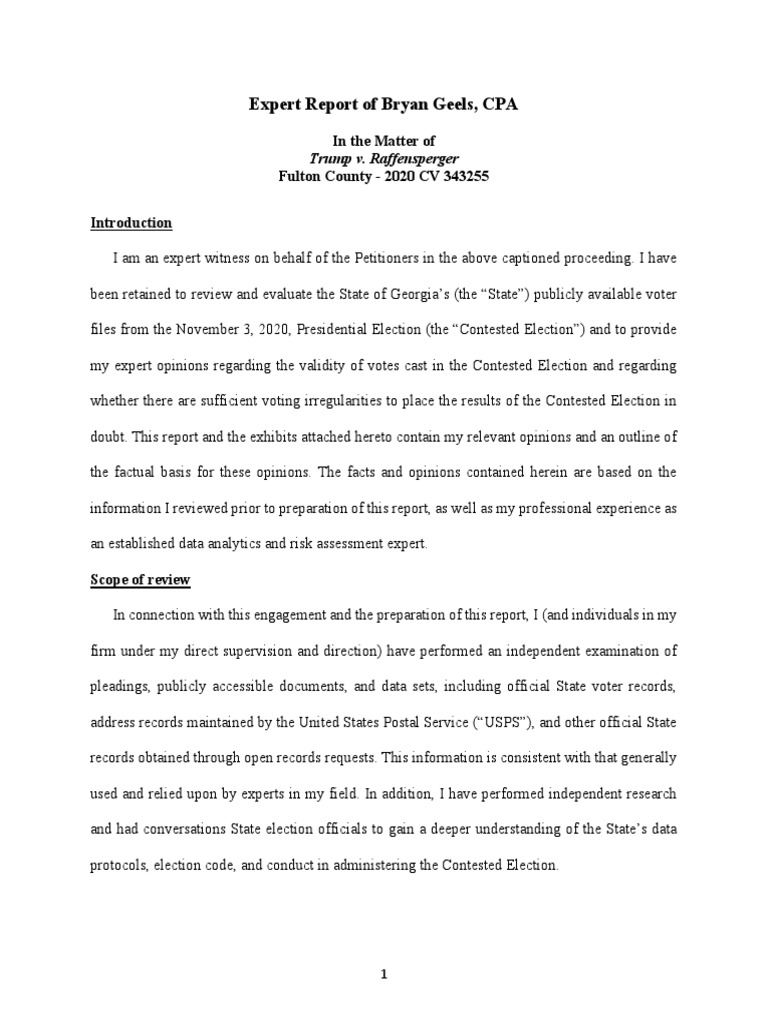 I have been retained on behalf of Petitioners to assess voter irregularities and evaluate the