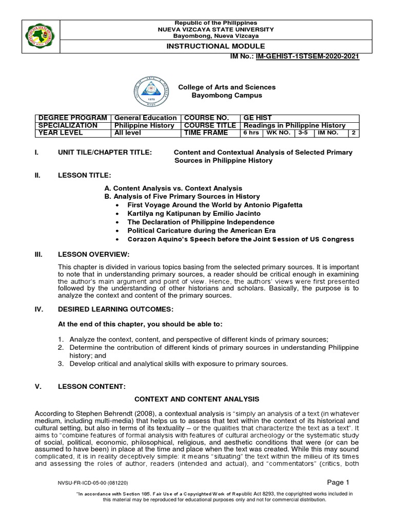 2. Determine the contribution of different kinds of primary sources in understanding Philippine