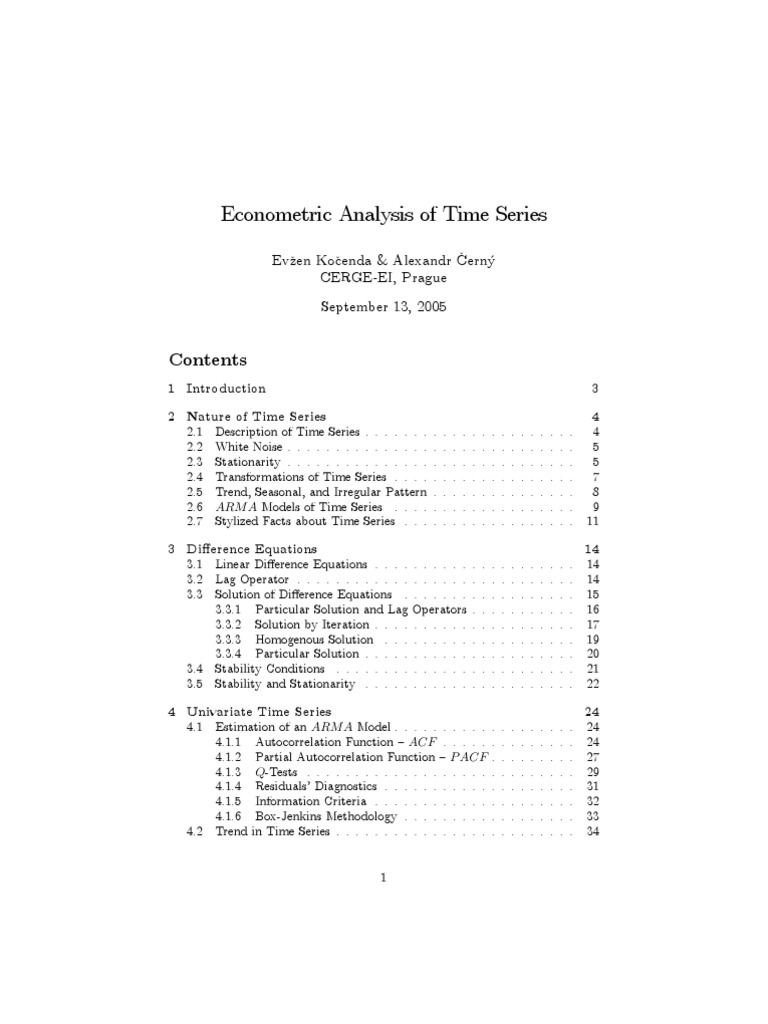 equations, Univariate time series, and Multiple time series. The Þrst section