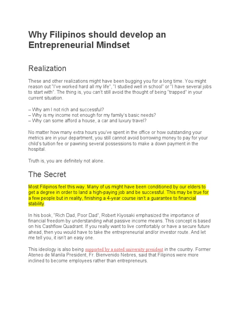 Finally, what hinders the success of some Filipino entrepreneurs is the lack
