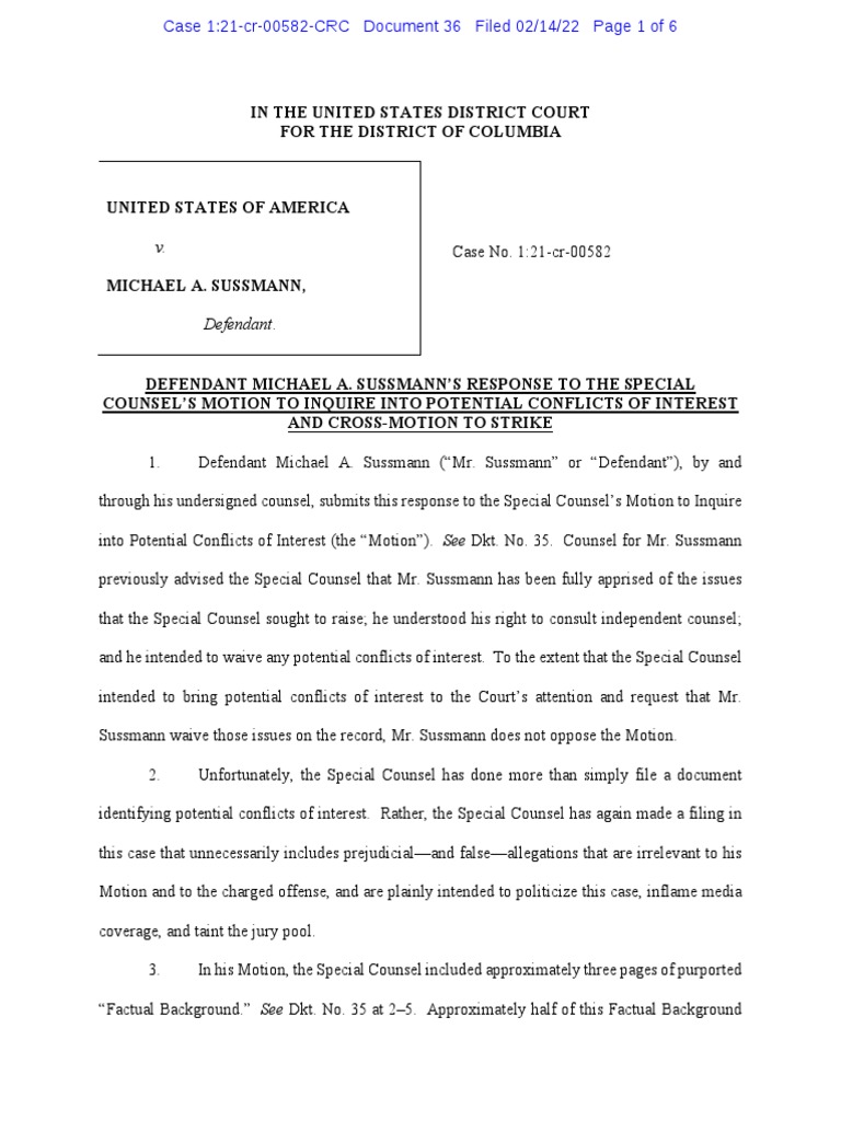 into Potential Conflicts of Interest (the “Motion”). See Dkt. No. 35. Counsel for Mr. Sussmann
