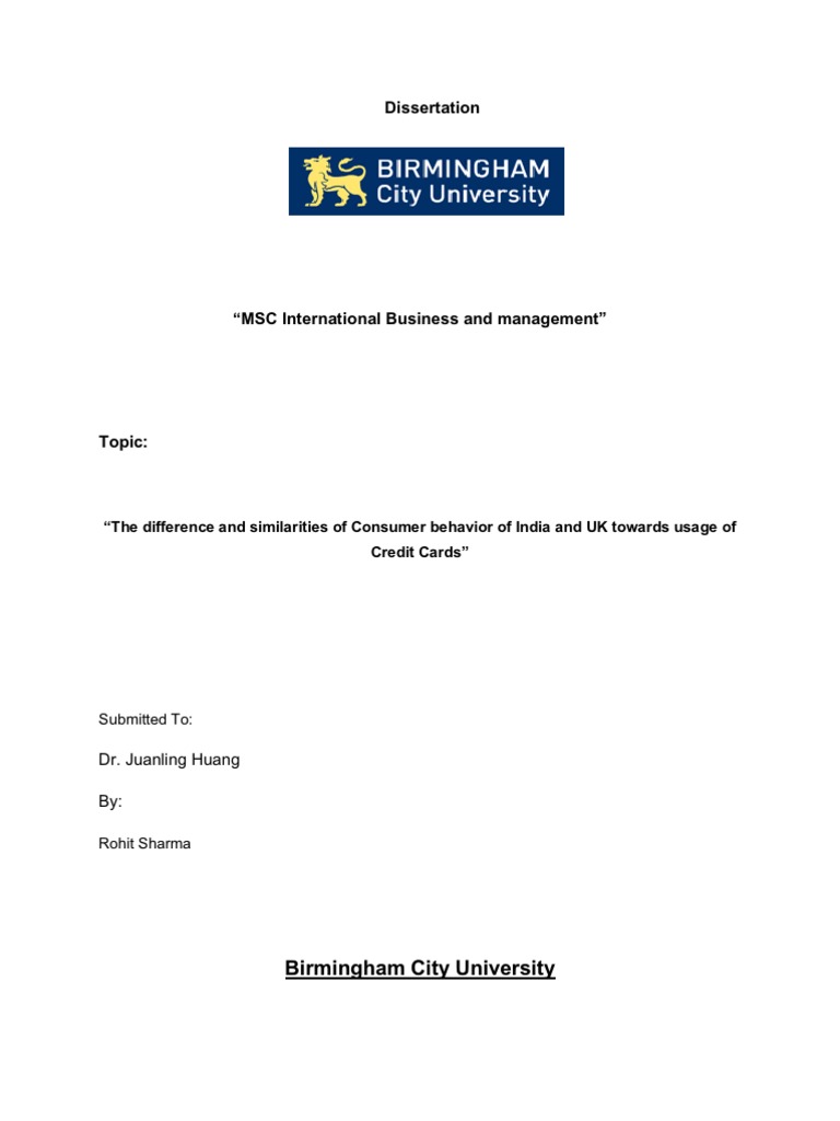 comparative study of Birmingham based consumers and New Delhi (India) based