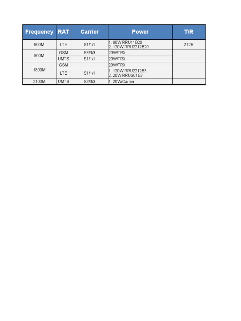 Frequency RAT Carrier Power T/R