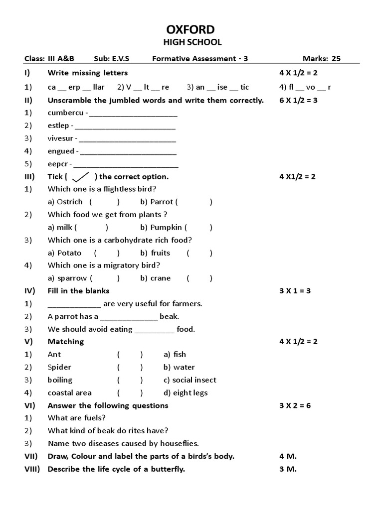 Class: III A&B Sub: E.V.S Formative Assessment - 3 Marks: 25