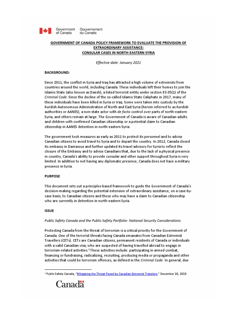 assessing whether Canadian government officials could safely travel to north-eastern Syria.