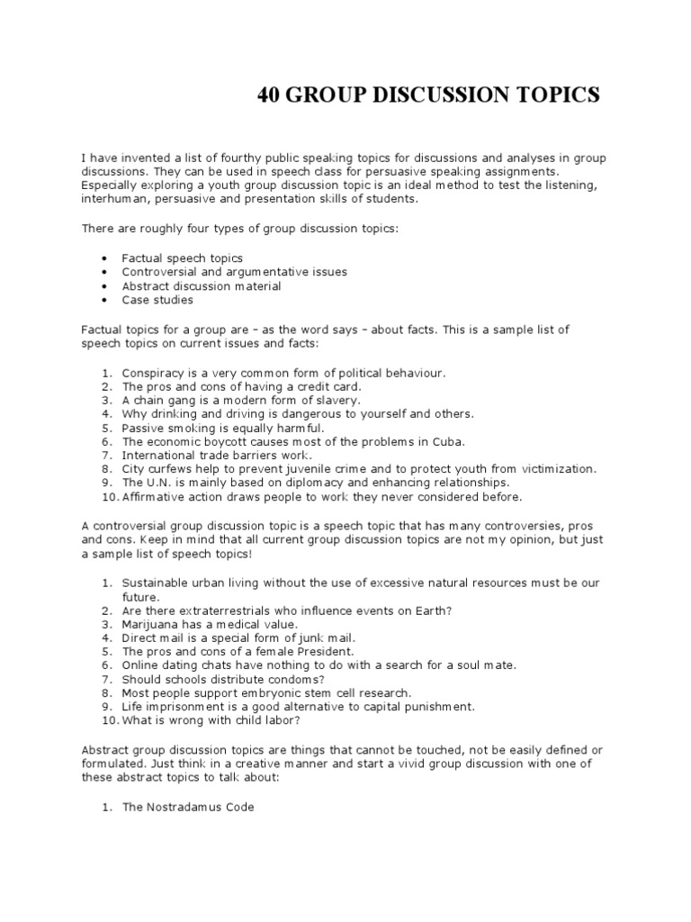 40 GROUP DISCUSSION TOPICS