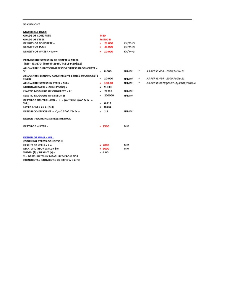 WALL DETAIL : DESIGN METHOD ADOPTED AS PER IS-3370-2009, LIMIT STATE WITH CTRACK WIDTH LIMITED TO 0.2 MM