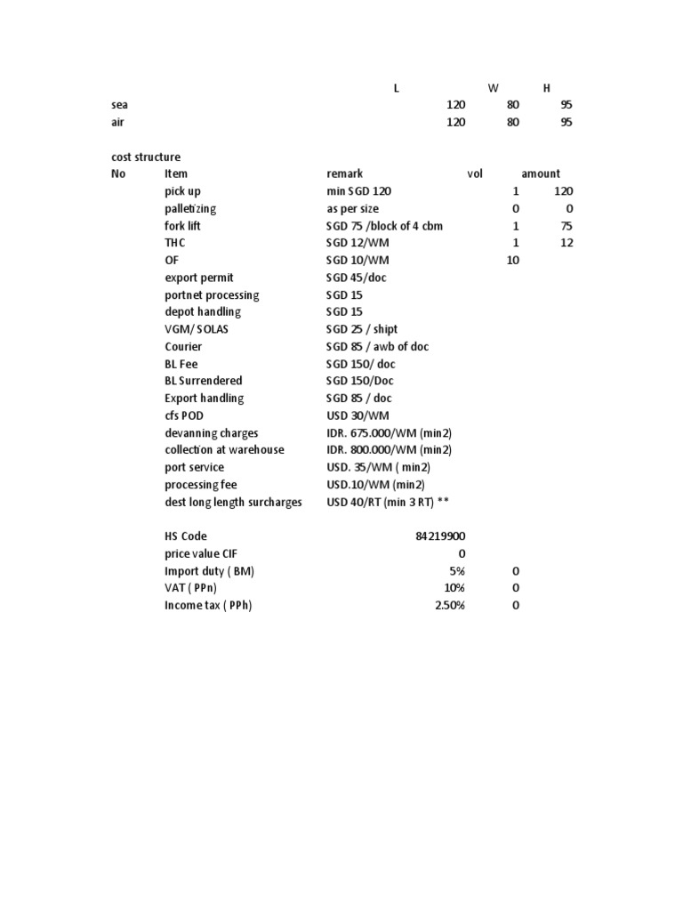 dest long length surcharges USD 40/RT (min 3 RT) **