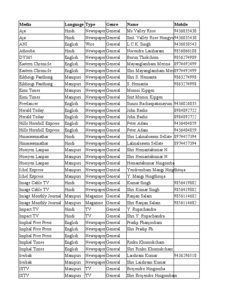 Manipur Mail English Newspaper General N. Sanatomba 9856325655