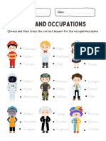 The document lists different occupations including teacher, police officer, fire fighter, astronaut, doctor, nurse, vet, farmer, engineer, plumber, actor and singer.