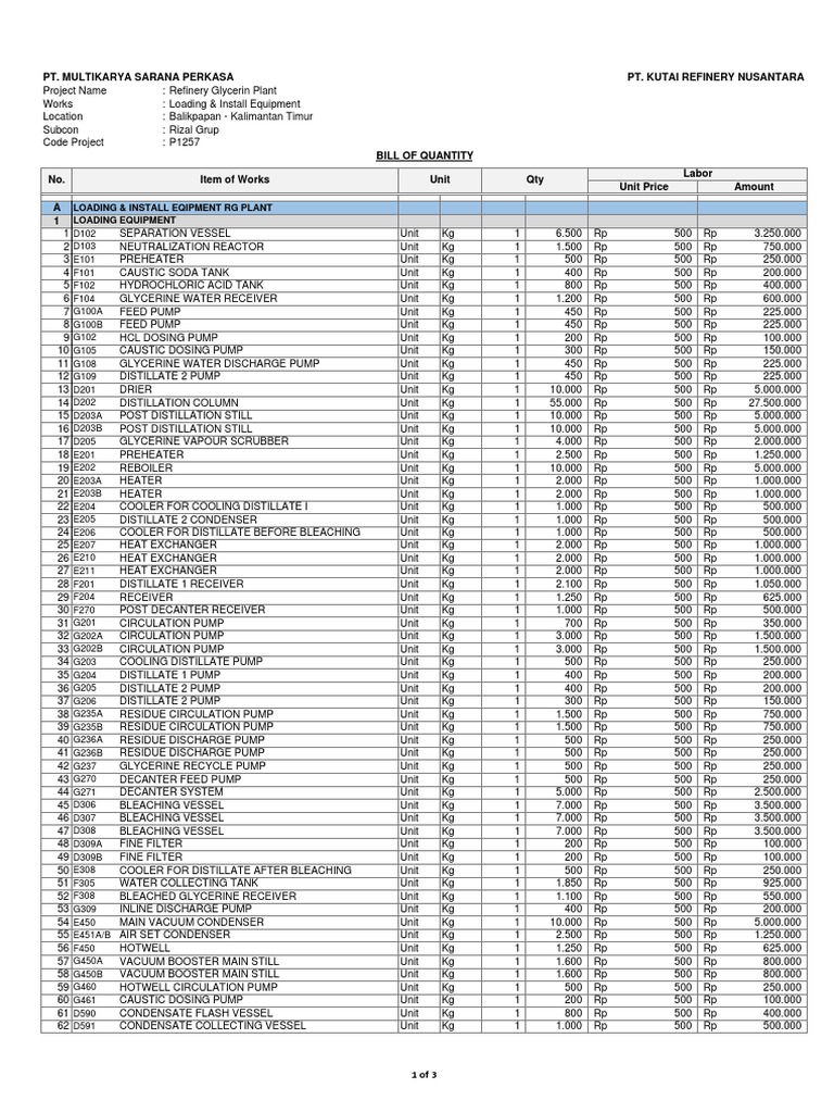 1 D102 SEPARATION VESSEL Unit Kg 1 6.500 Rp 500 Rp 3.250.000
