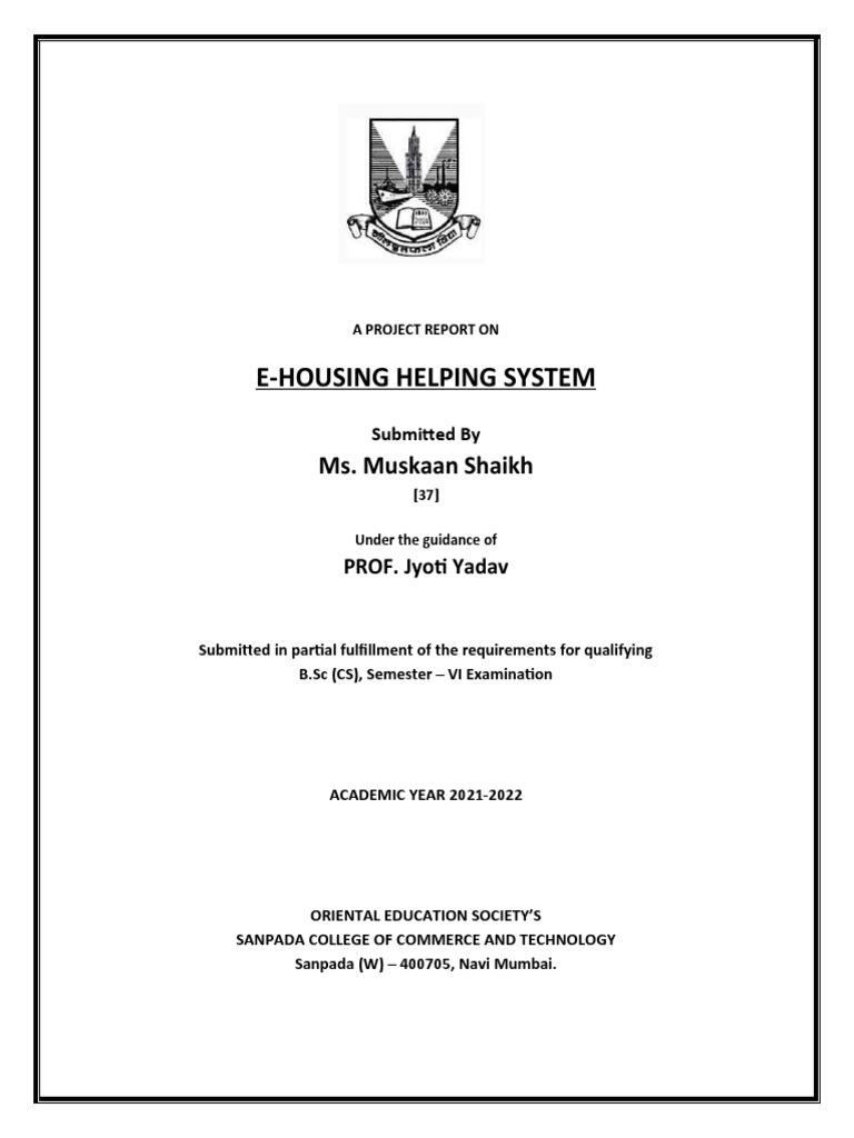This is to Certify that the Project Entitled ” E-Housing Helping System” Undertaken at the Sanpada
