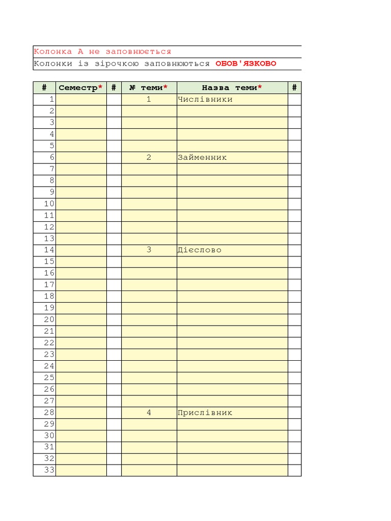 # Семестр* # № теми* Назва теми* #