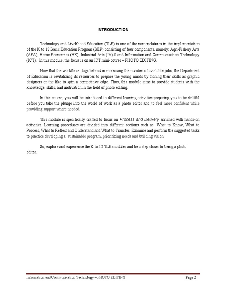 (ICT). In this module, the focus is on an ICT mini-course – PHOTO EDITING.