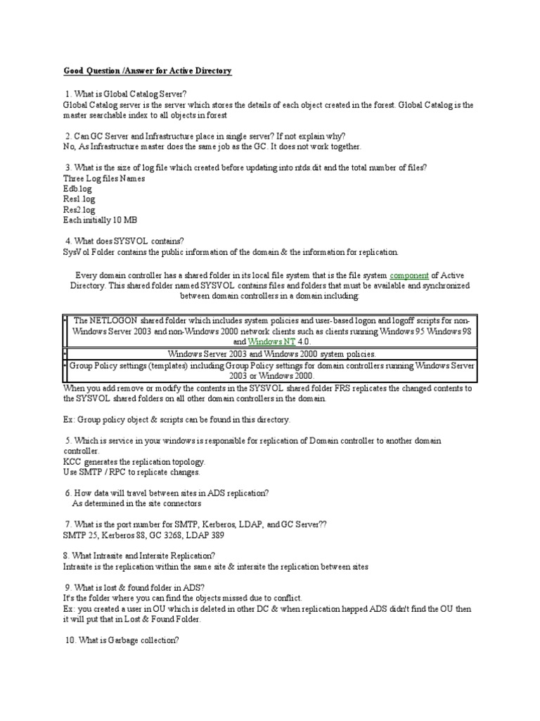 Good Question /Answer for Active Directory