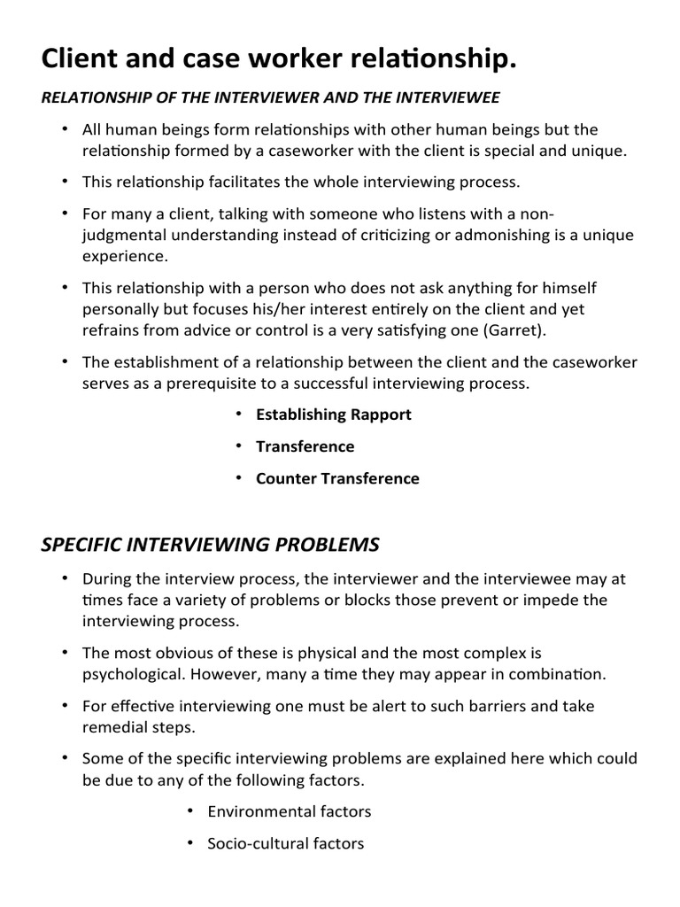 • This relationship facilitates the whole interviewing process.