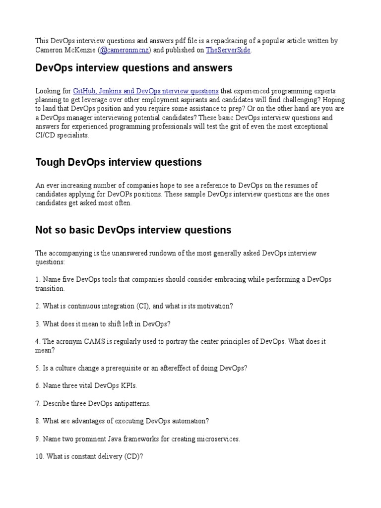 This DevOps interview questions and answers pdf file is a repackacing of a popular article written by