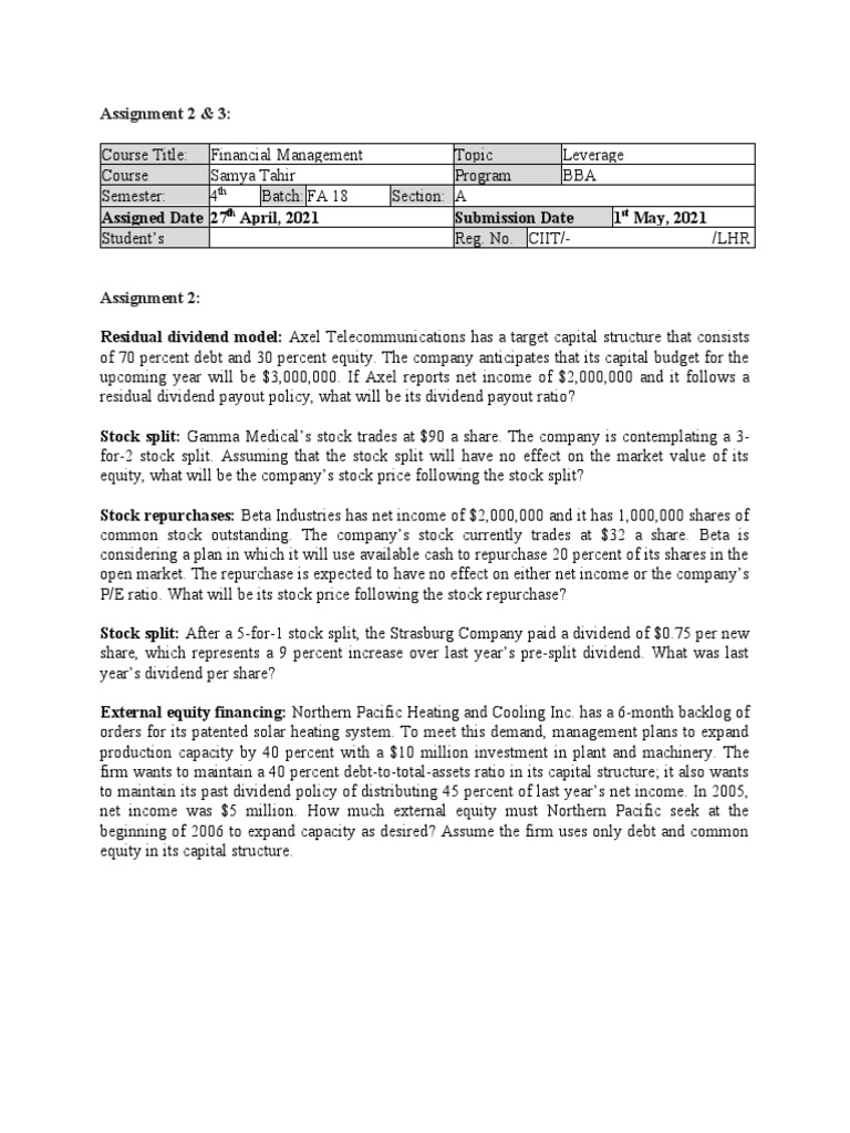 Course Title: Financial Management Topic Leverage