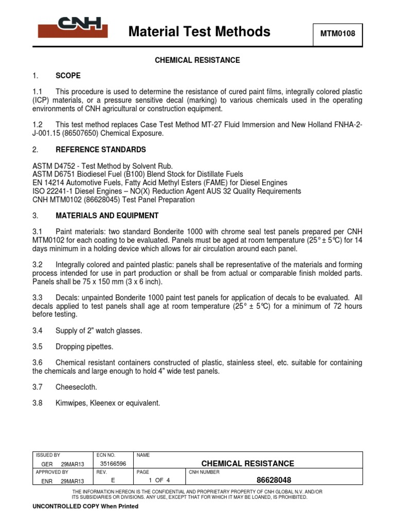 1.2 This test method replaces Case Test Method MT-27 Fluid Immersion and New Holland FNHA-2-