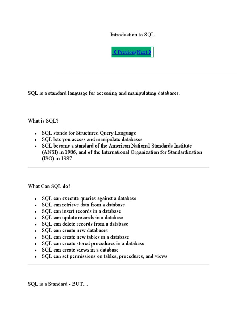 Most of the actions you need to perform on a database are done with SQL