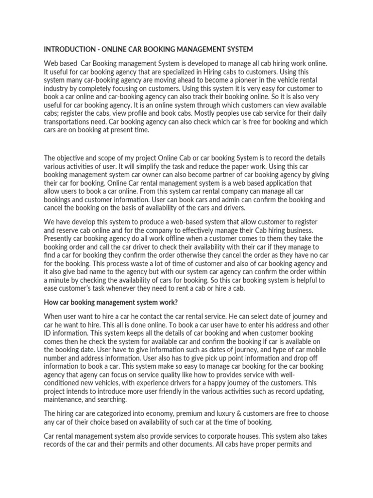 to your to online car booking project report see "Related. Dev IT Solutions Specialized Car